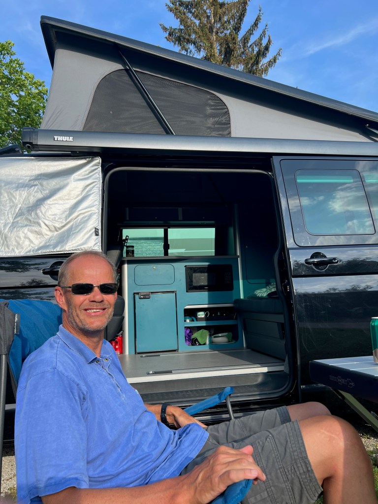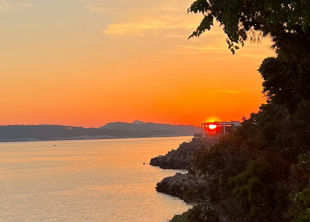 The good bits: This was a great, and very popular campsite. We were glad we’d booked, because there were queues of campervans and RVs waiting for a spot. The facilities were excellent, and there was a super restaurant and bar area that served delicious coffees, pastries and meals.