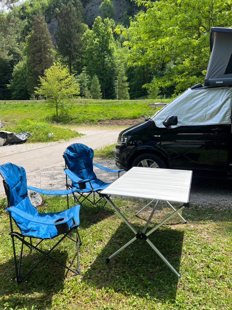 We stayed at Camping Bled. It was in a perfect lakeside location, near a beach, jetty and boathouse.