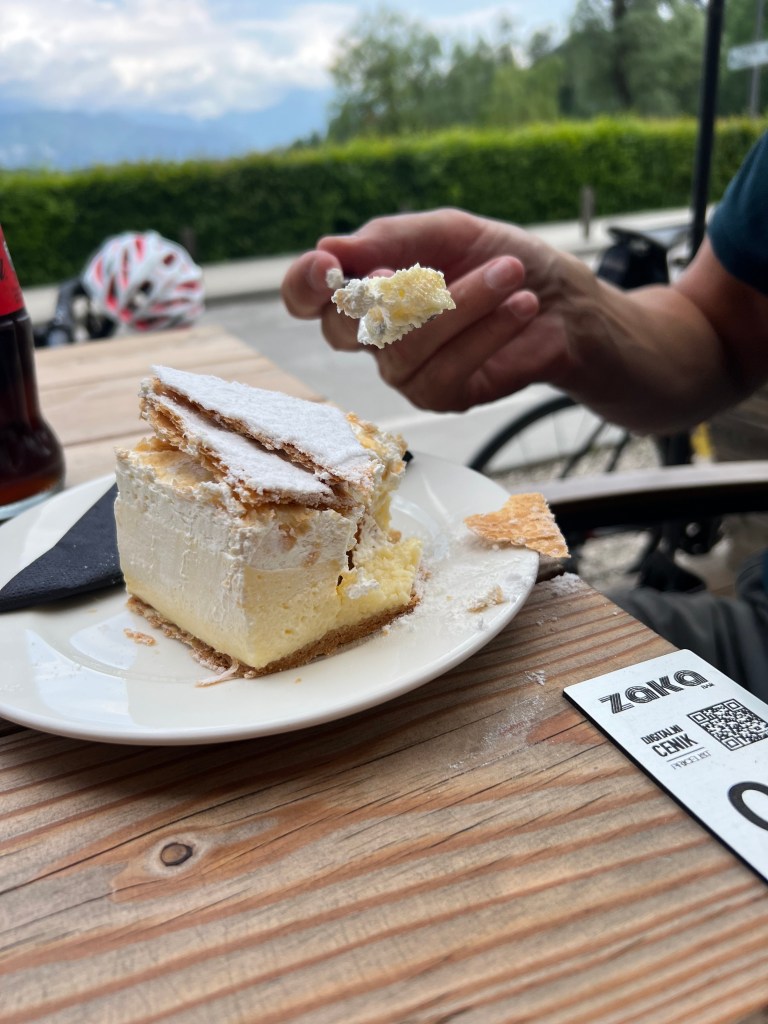 Our campsite was across the lake from the town of Bled. We walked the 6km circumference of the lake, joined the sundown crew in a bar, and Mr G rowed me out to the island. I can confirm that his two years in the Christchurch second eight did not go to waste! We made it to the island in record time, with effortlessly professional coxing from me on the lines of ‘err, no, can’t you go a bit more that way.’