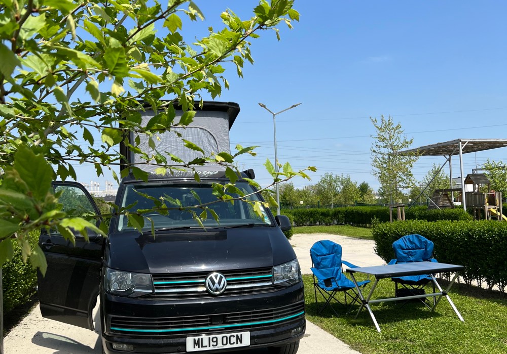 But, sad person that I am, one of the best bits of Plovdiv for me was the campsite. It was called The Motel and Glamping Alliance, which sounds a bit dodgy. Maybe it is a bit dodgy-but it made van life so easy. It was a brand new complex designed for camping, glamping and hotel guests. There were glamping pods, tree houses, pet showers, en-suite bathrooms for tents or vans, a beach, games room, bar, strong Wifi and immaculate laundry facilities all accessed by scanning a QR code. Surely this is cheating?! Aren’t we meant to be suffering for our adventure?
