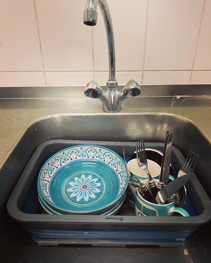 The thing about van life is that there’s always a job to do if you want to avoid descending into chaos. All the usual home chores like washing up, laundry and cleaning still have to be completed. In a cramped space, with none of the right equipment. It’s like playing in a toy kitchen at nursery school.