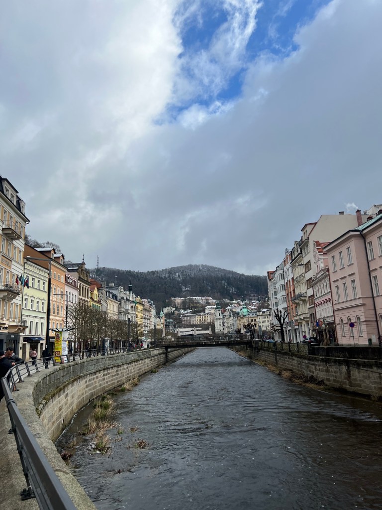 Karlovy Vary is a beautiful spa town, where people have travelled to take the thermal spring waters for centuries. It’s like a Czech Bath or Harrogate, but it seems to have maintained a much more active spa tradition than the British spa towns.