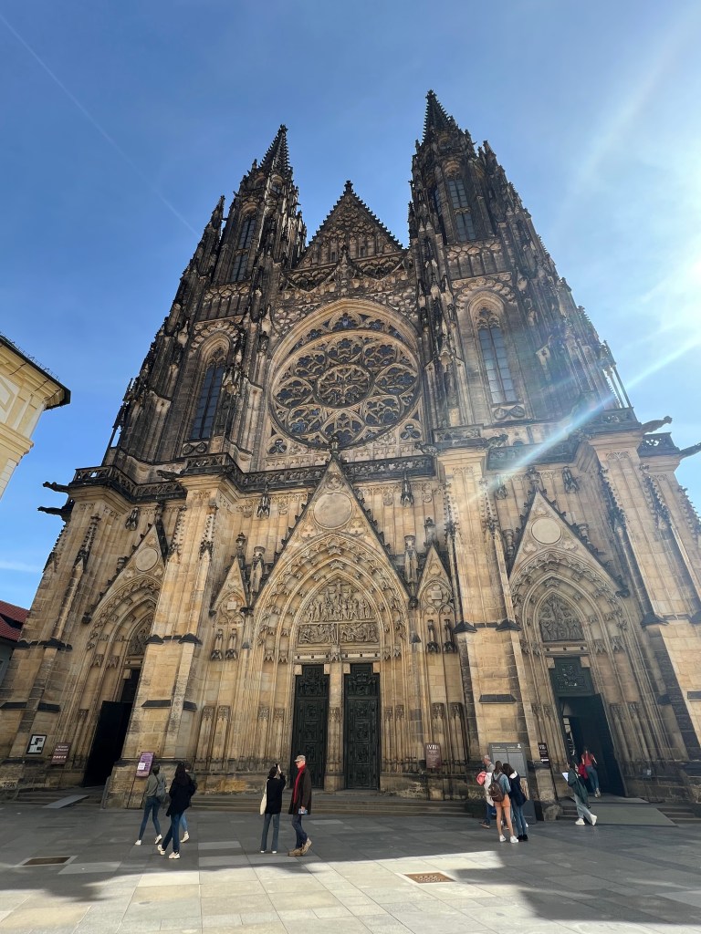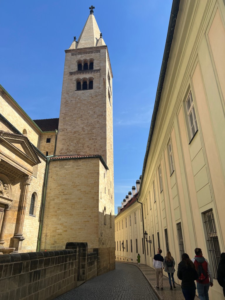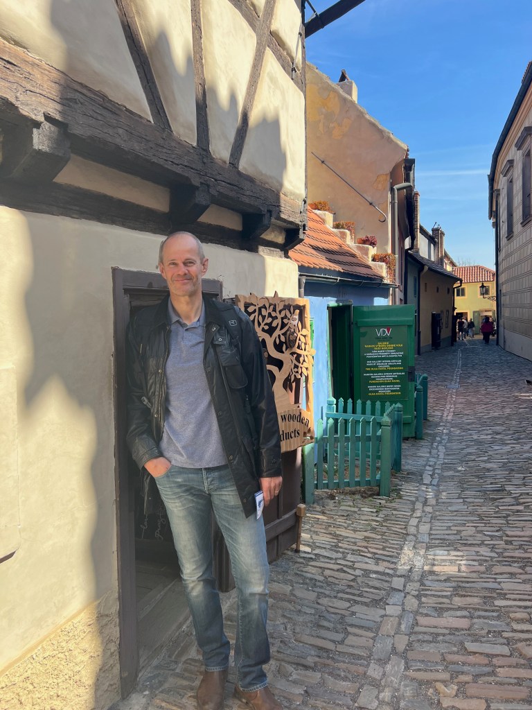 We had our ‘ Skip the line Prague Castle tickets’ and we were good to go. I had my new silicone insoles, so skipped up the steep cobbled steps ( not really, it was another slow haul) and we explored what is apparently the largest Medieval castle area in the world in what surely is record time! The views were mind-blowing and we loved the Golden Lane which was like a Czech St Fagan’s (apologies to non-Welsh readers- it’s a museum with recreated houses showing how people used to live) even if the doorways and rooms were more suited to shorties like me than those of Mr G’s proportions.