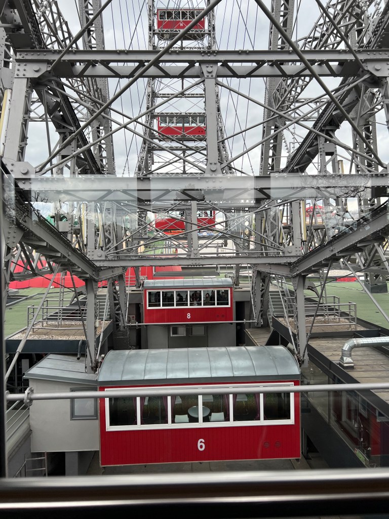Vienna is home to the oldest theme park in the world. We took in the Prater and had a sedate whirl on the Wiener Riesenrad, a sort-of old-school London Eye that opened in 1896. It gave great views of the city, although Mr G spent much of the journey wondering why the structure didn’t collapse, which didn’t make for a relaxing ride.