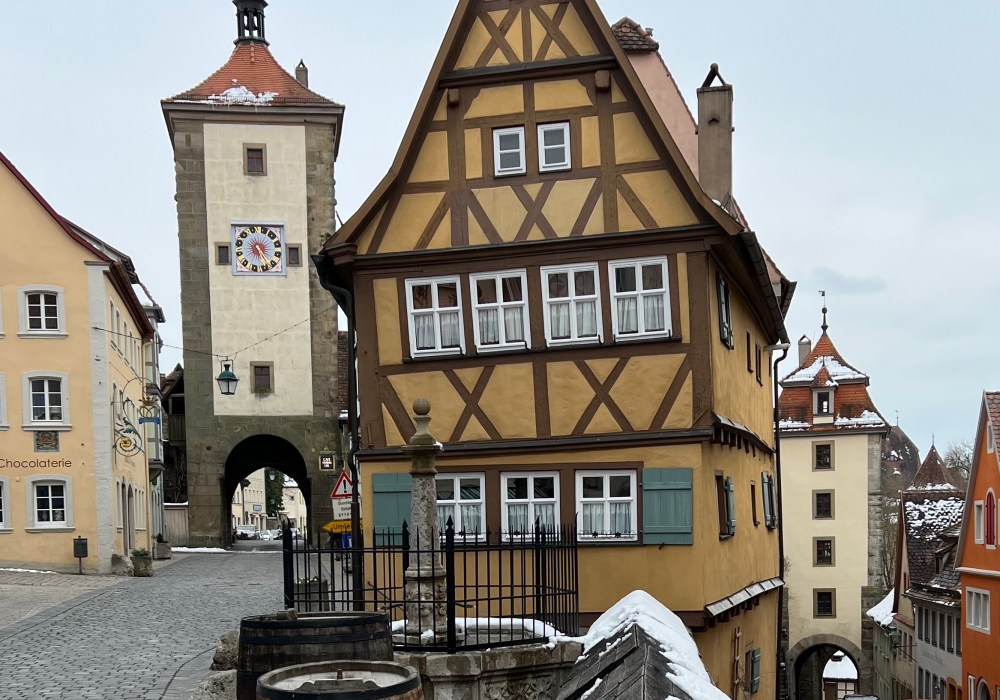 Romantic and beautiful it may be, but it was also very, very wet and windy in Rothenburg this morning. Hardened, outdoorsy types that we are, we had a lie in and a leisurely breakfast in the van. All the while reassuring ourselves that this is meant to be a holiday!